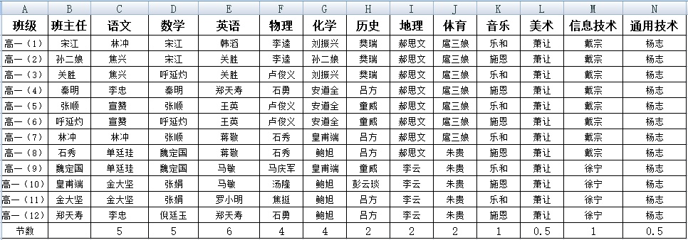第一行是固定标题,第二行开始是和标题对应的教学计划数据